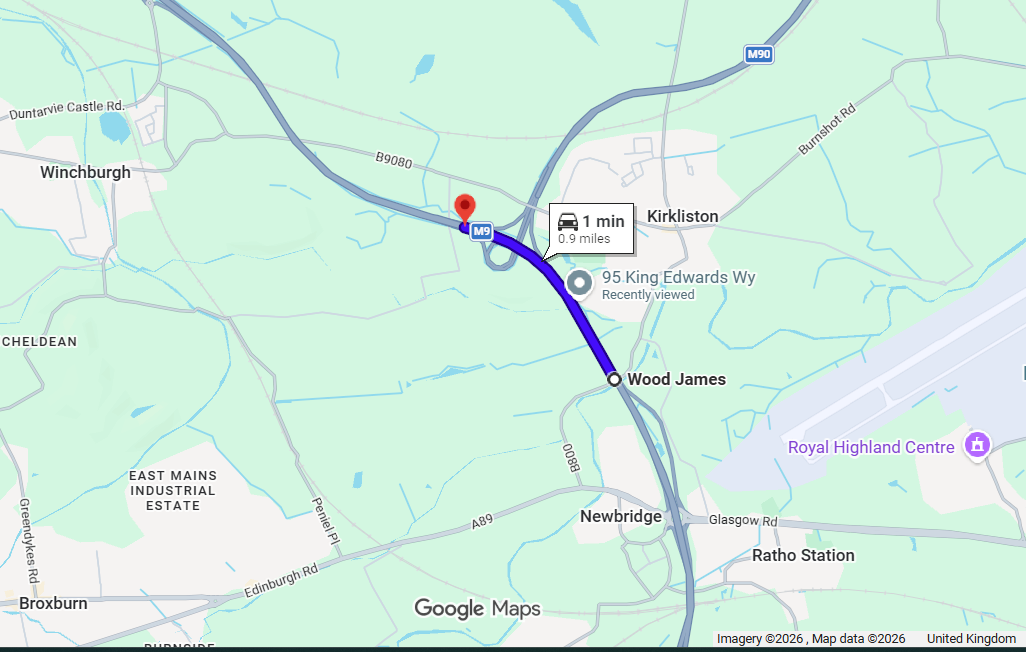 A diversion route suitable for trunk road traffic will be signposted from Junction 1A to Junction 1B (Winchburgh) where traffic will then be directed back onto the southbound carriageway of the M9 to the off slip to Junction 1A, adding an estimated 3.5 miles and 4 minutes to affected journeys.